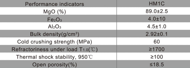 HM1C brick has extreme refractoriness under load and good resistance to chemicalattack, high magnesium content to ensure the products excellent high temperatureperformance.The addition of Fe-Al spinel provide the excellent coating adhesivestrength,also raised the thermal shock stability.Low silicon oxide content effectivelyrestrain the brickly system in the production of low melting point phase.Through theaddition of special micro powder to further improve the performance of the product,to reduce the apparent porosity, improve the stability of coating adhesive strength,and further improve the chemical corrosion resistance of the material, the use ofparts: 2500t/ d-5000t /d rotary kiln firing belt.